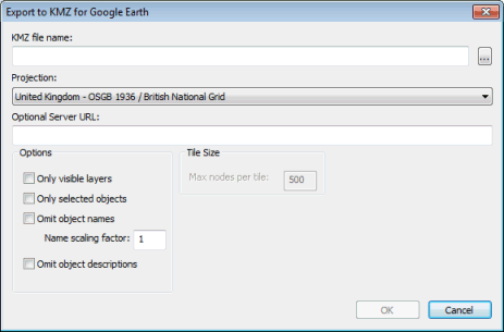 Export to KMZ for Google Earth dialog