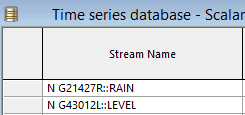 In the TSDB, the names of the individual data streams in the file would be entered on separate rows in the Stream name column as N G21427R::RAIN and N G43012L::LEVEL.