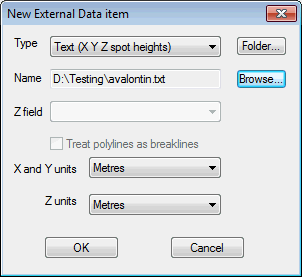 - Text (X Y Z polylineZ): format is similar to the Text (X Y Z spot heights) file, except the file has a line reading ENDLINE defining the end of each polyline. Check the Treat polylines as breaklines box to enforce the polylines as TIN edges